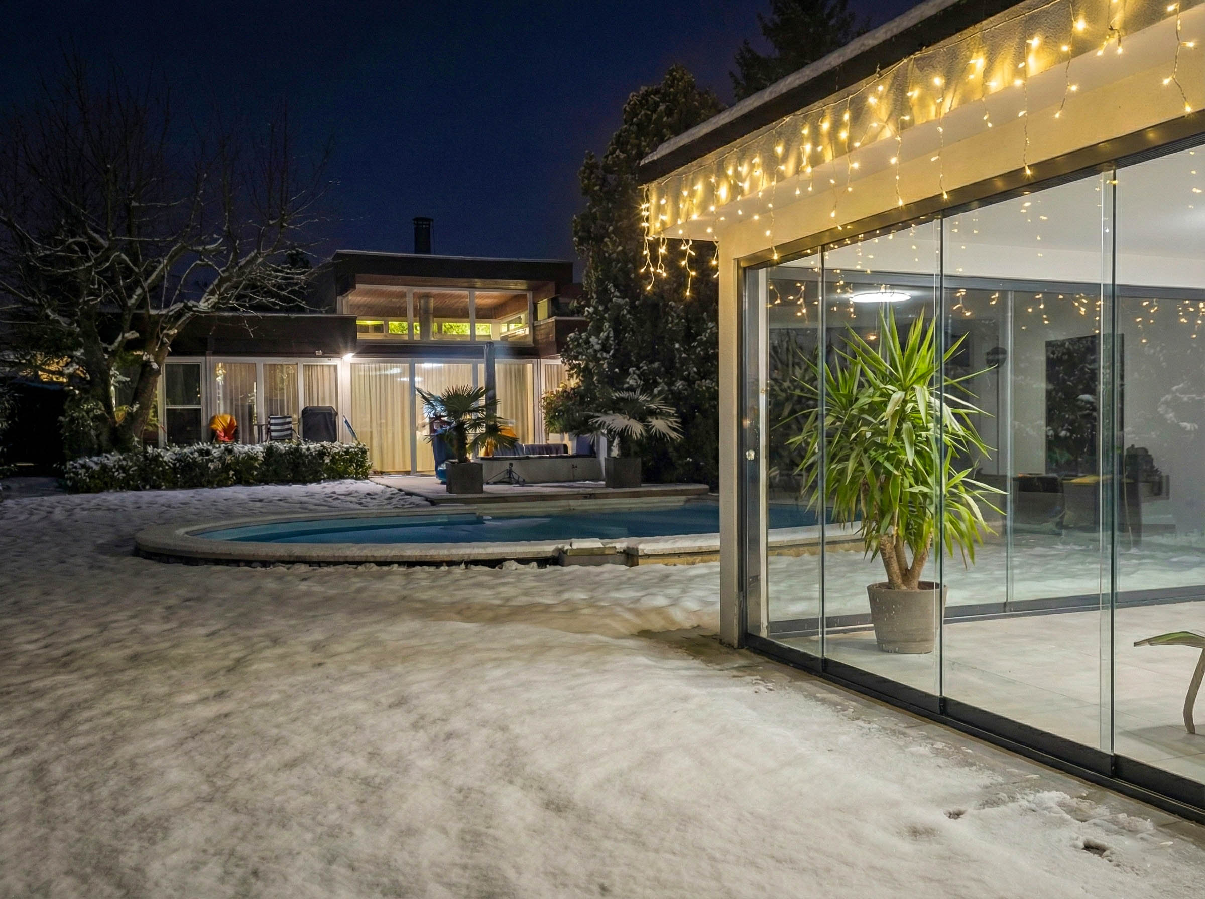 Der Wunsch war klar: Das Poolhaus sollte sich schließen lassen — geschützt, ordentlich, schön. Und im Winter? Da kam noch eine Idee hinzu, die das Projekt zu etwas Besonderem macht.