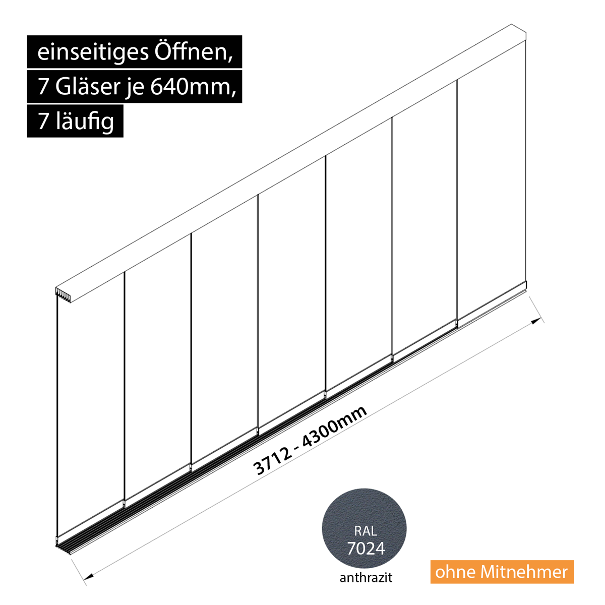 Glasschiebesystem 3712-4300mm 7x640mm 4 spurig anthrazit