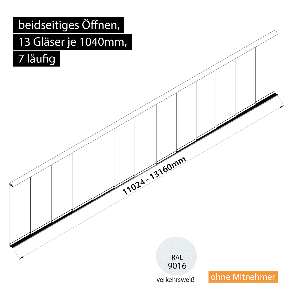 Glasschiebesystem 11024-13160mm 13x1040mm 7 spurig verkehrsweiß
