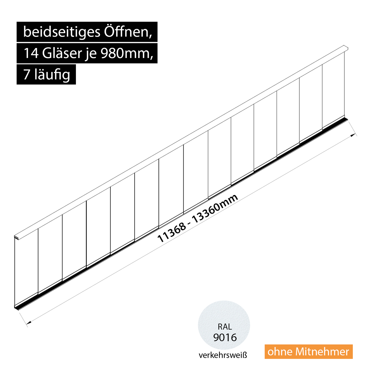 Glasschiebesystem 11368-13360mm 14x980mm 7 spurig verkehrsweiß