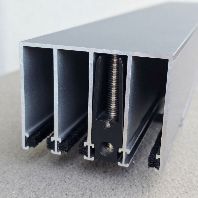 Glas-Stopper werden in der oberen Führungsschiene montiert und stoppen jeweils eine Glasscheibe.