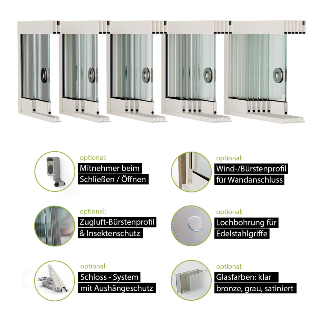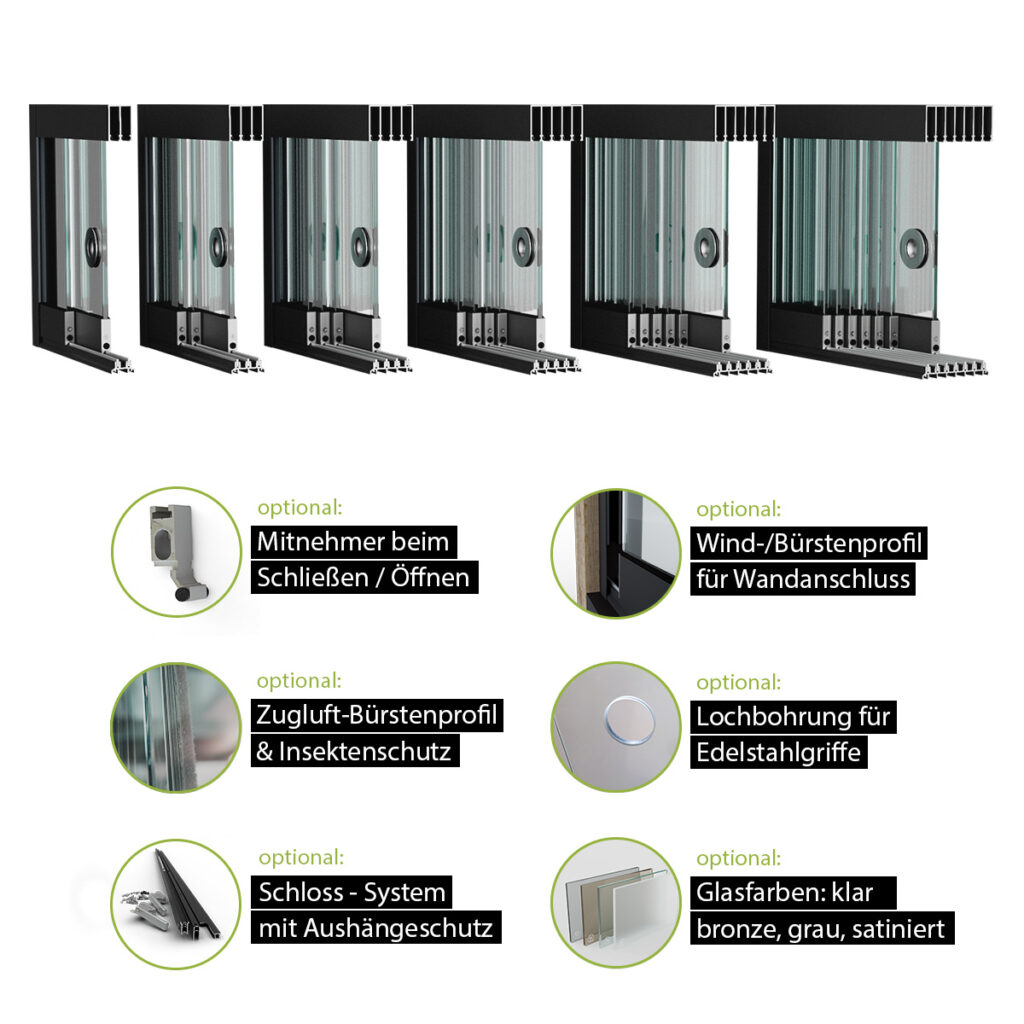 Glassaugheber für die einfachere Handhabung der Glasscheiben.